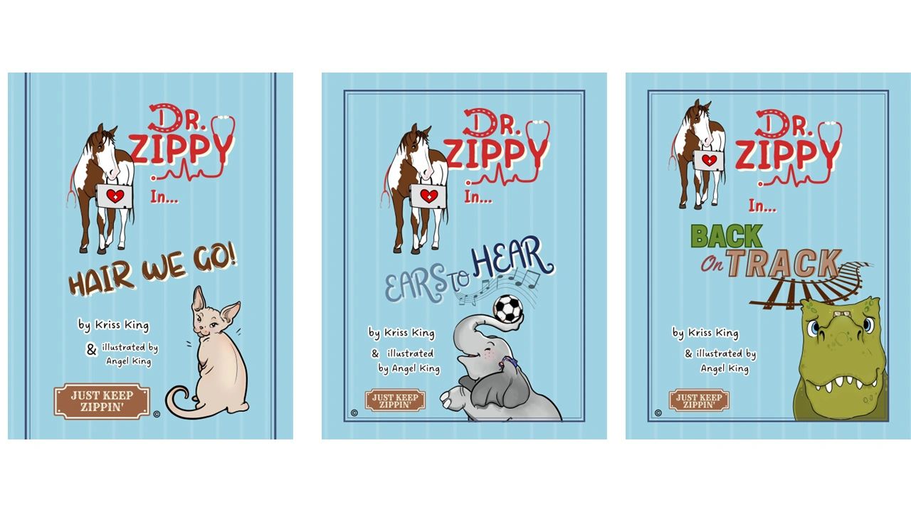 Just Keep Zippin' Books - Join Doc Zippy, the uplifting horse, as he interacts with his animal patients in the Just Keep Zippin' series of children's books that address challenges faced by kids.